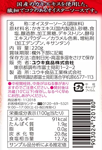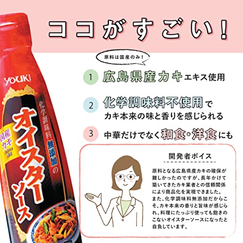 Oyster 100% Hiroshima Prefecture. Chemical seasoning additive-free oyster sauce 220g. Commitment to Hiroshima Prefecture oyster, with the aim of taste on one stage. Only the oysters were big growth to taste plenty of that to be concentrated over a carefully long time at low temperature, creating a mellow and rich flavor. Not only Chinese, and only add a small amount to Japanese-Western. Enjoy the taste of oysters and finished without a chemical seasoning.