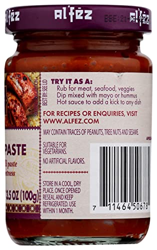“Al’Fez Harissa is a classic North African hot and spicy chili paste. Made with Chili, Tomato and Garlic, Harissa can add a kick to any dish while cooking, marinating or as a finishing touch! Traditionally found across North Africa and the Mediterranean in Libya, Tunisia, Algeria and Morocco. Harissa is used to add heat and flavor to stews, soups and tagines. This authentic blend of herbs and spices makes a delicious addition to a wide range of dishes.”