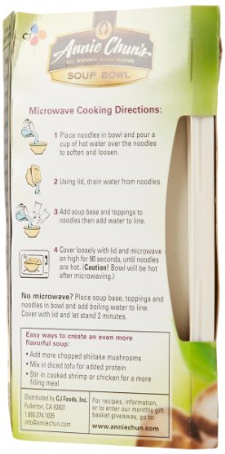 Annie Chun’s Noodle Bowls are instant gourmet food, perfect for lunch or a quick dinner at your fingertips! Keep these bowls in your desk or cupboard, then just heat and serve. When time is short just pull out an Annie Chun’s all vegetarian noodle bowl from your desk or cupboard, microwave for one minute and serve. This meal comes to you in a biodegradable bowl that decomposes in the soil with no harm to the earth. It’s better for the planet and one small way we can care for our environment together.
