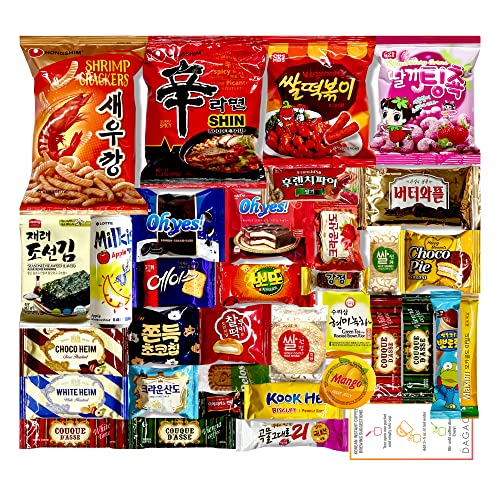 Inside Dagaon’s Korean Snack Box are the Korean’s favorite snacks including chips, biscuits, cookies, pies, candies, crackers, drinks and ramen. All of our snacks are individually wrapped snacks in one box and ready to enjoy right away. We selected only the Korean’s top favorite brand snacks so that everyone can experience satisfaction. In our snack box, there is instruction postcard to enjoy our instant coffee and tea. Dagaon’s Korean Snack Box will be perfect gift or care packages to everyone including kids, teens, adults, seniors, husband, wife, grandchildren, grandparents, parents, teachers, boss, partner, co-workers, aunt, uncle, cousin, office, meetings, college, holiday, trip, camp, picnics, hospital, birthday, events, Halloween, Valentine’s day, and much more. You can enjoy Dagaon’s Korean Snack Box immediately anywhere and anytime! Items in the box may change with similar items based on availability. Food Allergy Warning: Our Snacks may contain Peanuts, Other Nuts, Wheat, Soy and Dairy Products. Product of Korea.