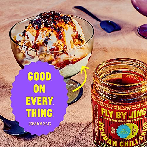 FLYBYJING Sichuan Chili Crisp, Gourmet Spicy Tingly Crunchy Hot Savory All-Natural Chili Oil Sauce w/Sichuan Pepper, Versatile Hot Sauce Good on Everything and Vegan, 6oz (Pack of 2)