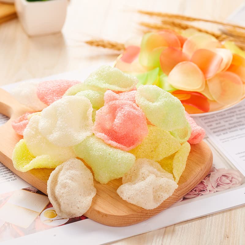 These are tasty Uncooked Prawn/Shrimp Crackers that puff up when deep-fried in Oil. It Can also be Air Fried or Microwaved. It is made by mixing Minced Prawn/Shrimp Meat, tapioca starch, corn starch, Salt and water. The mixture is rolled out, steamed, and sliced. These Crackers make a great snack food for both kids and adults. Their texture and flavor goes very well with beer and wine. INGREDIENTS: Corn Starch, Salt, Sugar, 17.6 oz per Pack (500g), Asian Colored Shrimp Snacks, Great for snacking, parties, movie night and more.EDIBLE METHOD: Don’t fry too many of the crackers at once, and have a wire basket or wooden chopsticks ready to quickly remove them from the hot oil. CRUNCHY, DELICIOUS FLAVOR: A classic Chinese snack these light and savory full-flavored prawn chips offer a gourmet flavor that’s crunchy texture to satisfy your tastebuds. STORAGE INSTRUCTIONS: Shelf life 24 months. Please keep it under ventilated, cool & dry environment. Please avoid the direct sunshine and high temperature. Origin: China