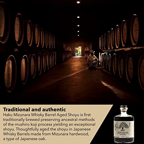 Savory that is to die for: Our uniquely prepared dark soy sauce is aged for 2 years and further aged for 13 months in Japanese whiskey barrels made of Mizunara hardwood, a type of Japanese Oak. It gives the shoyu soy sauce a mellow taste with a sweet note and unlocks the umami sense.