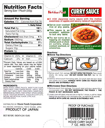 House Foods Curry Sauce with Vegetables (Medium Hot)