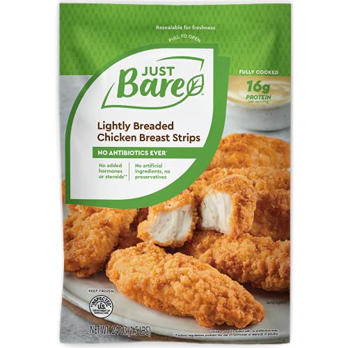 Just Bare® Chicken Lightly Breaded Breast Strips | Fully Cooked | 16G Protein | Frozen |1.50 LB