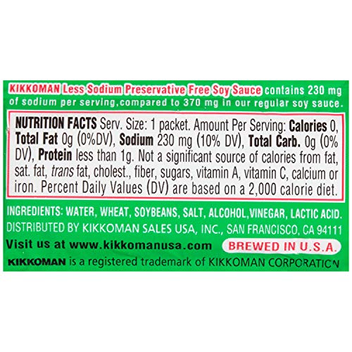 The same all-purpose traditionally brewed Kikkoman Soy sauce, now less sodium, preservative-free and in convenient packets. Enhance all your takeout items, eliminate measuring and portioning, reduce Waste and simplify condiment station and packaging station management. Made in the USA and Kosher certified.