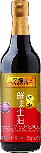 -Lee Kum Kee Premium Light Soy Sauce, 16.9-Ounce + Lee Kum Kee Premium Dark Soy Sauce – 16.9 fl. Ounce + One NineChef Spoon -Lee Kum Kee Premium Light Soy Sauce Made from premium soybeans and wheat flour. It is brewed according to the traditional and natural methods. Lee Kum Kee Premium Soy Sauce has a rich flavor, color, and aroma that will delicately enhance the taste of any dish. Ingredients:Water, salt, soybeans, sugar, wheat flour, disodium 5’-inosinate and disodium 5’-guanylate as flavor enhancers. Allergens:Soybeans, wheat -PREMIUM DARK SOY SAUCE Made from naturally brewed soy sauce. Its rich soy flavor and full-bodied color will delicately enhance the taste and appearance of a variety of dishes. Ingredients: Water, salt, caramel color, sugar, soybeans, wheat. Contains soybeans, wheat. Allergens: Soybeans, wheat