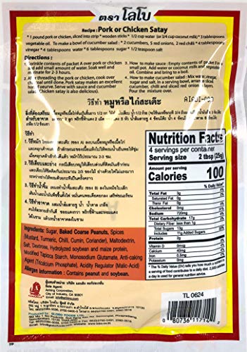 3 Packs of Thai Satay Seasoning Mix. Each pack contains 1) Seasoning for marinate and 2) Peanut Sauce Mix.