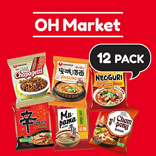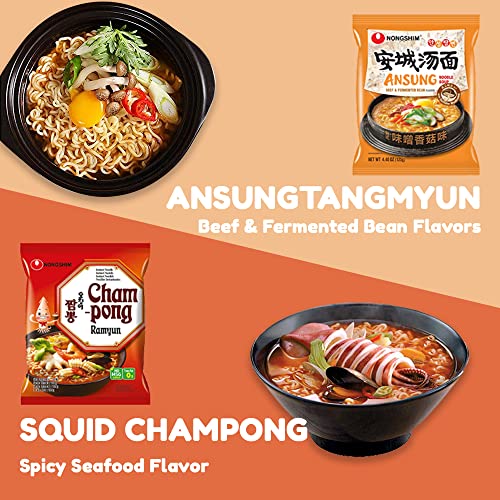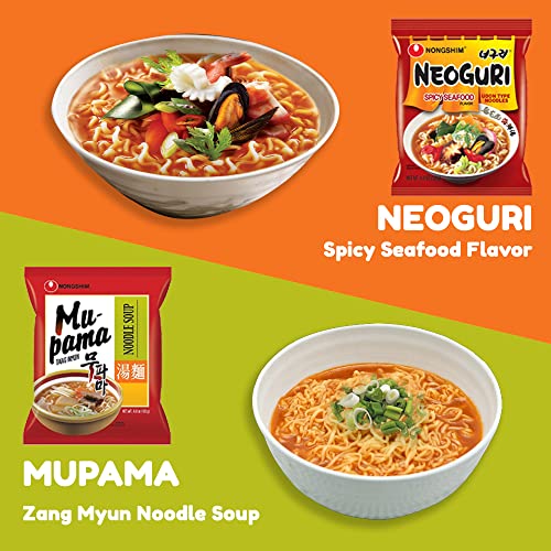 VARIOUS FLAVORS – Shin Ramyun Noodle Soup 2 pack, Chapagetti 2 pack, Ansung Tang Myun 2 pack, Neoguri Noodles Spicy Seafood 2 pack, Mupama Tang Myun 2 pack, Squid Champong Ramyun 2 pack