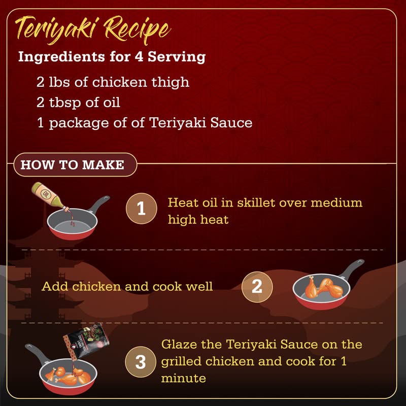 Easy Cooking Everytime – This classic teriyaki sauce adds an Asian flair to your culinary creations. The unique blend of sweetness, saltiness, and umami perfectly enhances the flavor of any kind of meat. Great for pan-frying, stir-frying, baking and grilling.
