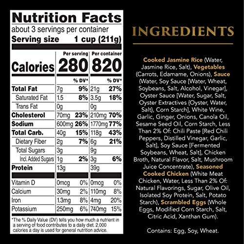 These frozen entrees contain frozen rice, chicken, carrots, edamame, onion and egg