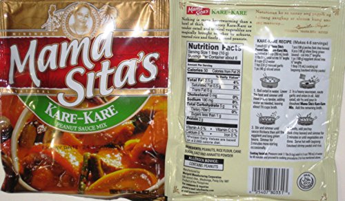 Mama Sita Peanut Sauce Mix (Kare Kare) Seasoning in 2oz Pack. Nothing is more heartwarming than a bowl of thick and savory Kare-Kare as tender oxtail and tropical vegetables are magically brought together by achuette, toasted rice and finely ground peanuts. The famous Philippines seasoning. Product of Philippines.
