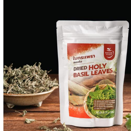 Premium Thai Holy Basil Leaves, Dried, Essential Thai Herbs and Spices ingredient in Asian cooking, Natural and Aromatic 20 G (0.71 oz Pack of 1) Perfect for cooking and seasoning by NESAR FOOD