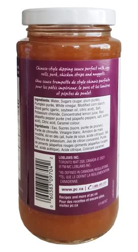 A sweet and tangy sauce perfect for crispy chicken fingers, shrimp and stir fries. In a convenient glass jar. Delicious plum sauce has President’s Choice stamp of approval. Absolutely delicious with egg rolls, won tons, and even chicken strips. Comes in a convenient glass jar. Made in Canada. Imported from Canada.