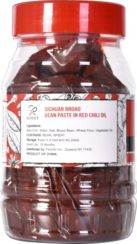 Soeos Sichuan Broad Bean Paste with Chili Oil 28.22oz (800g), Hongyou Doubanjiang, Pixian Doubanjiang Chili Paste, Ingredient for Sichuan Cuisine, Fermented Bean Paste, Red Bean Paste, Chili Paste.