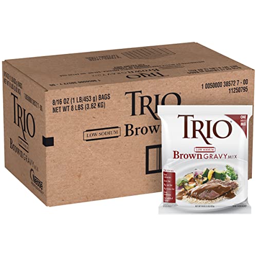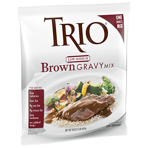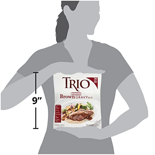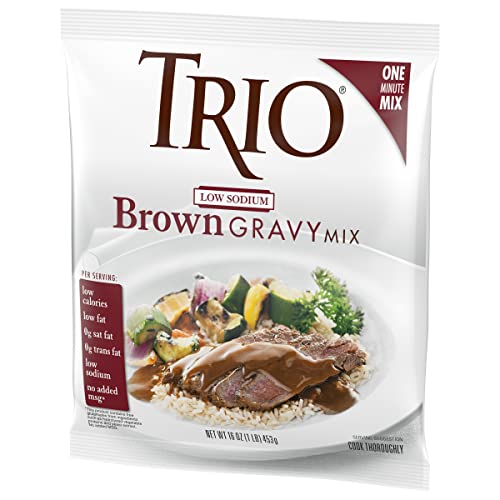 One (1) easy-to-store, shelf stable pouch of TRIO Low Sodium Brown Gravy
