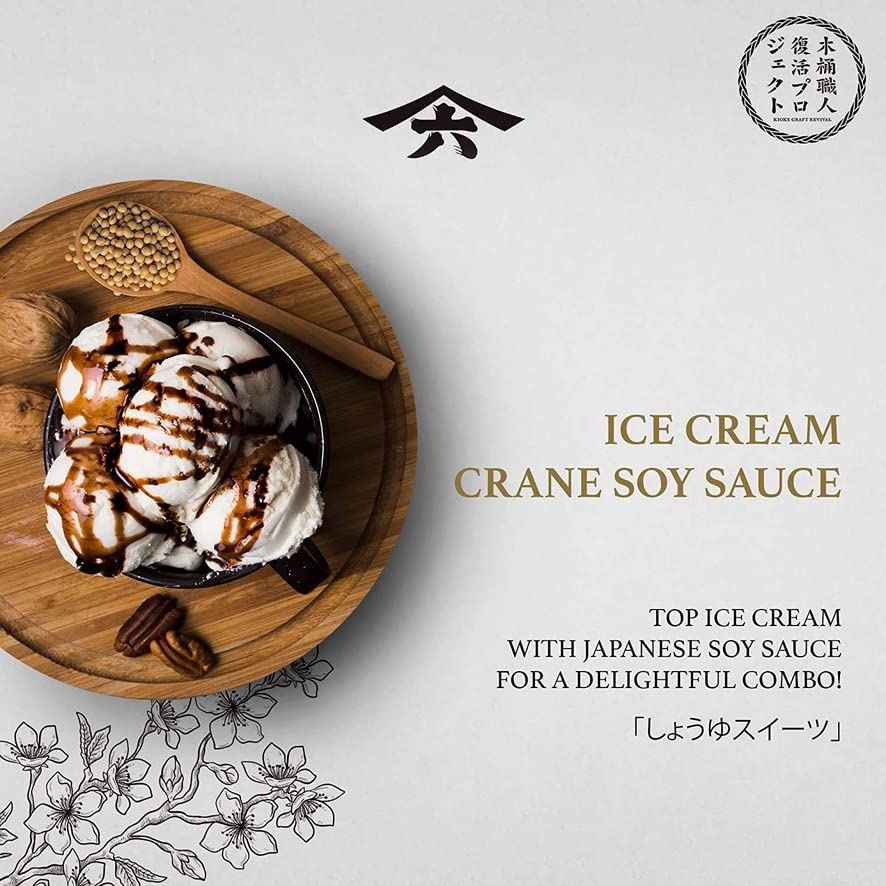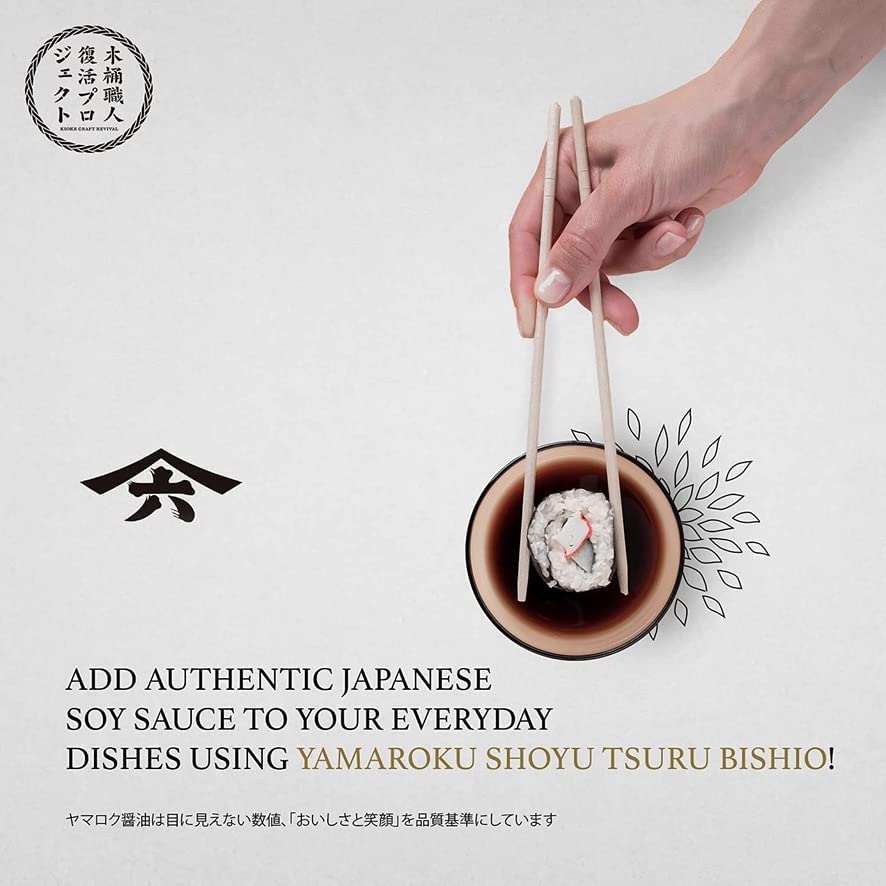 Kikubishio is the flagship series of soy sauce for Yamaroku and is aged the longest between 3-5 years. “Kiku” means “cchrysanthemum” and “Bishio” means “condiment”. In Japan, cranes are regarded as auspicious birds and symbolize longevity. It is said the song of cranes can reach the heavens, and Yamaroku wants this soy sauce to be like the cranes which can reach the heavens and be known to everyone. Tsurubishio is characterized as having a rich mellow flavor and is recommended for use in sushi, sashimi, tofu, grilled fish and as a secret ingredient for original dishes. A unique use of Tusurubishio is putting it on top of vanilla ice cream which creates a very caramel like flavor. Adds a surprise twist for guests and customers at a restaurant. This soy sauce is made using the traditional and authentic method to ferment Japanese condiments since ancient times using Japanese wooden barrels called kioke. Due to modern mass production of soy sauce, only 1% of total soy sauce production in Japan uses this traditional method. Get a taste of Japanese history almost lost in modern times by trying and enjoying this classic condiment done right.