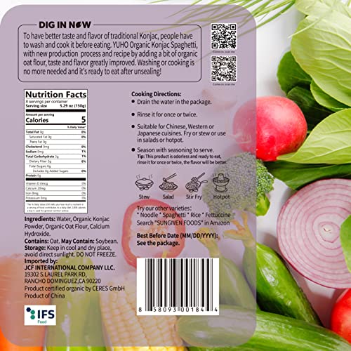 [PROMOTES HEALTHY]: KONJAC-BASED PASTA, YUHO Pasta is made with a unique ingredient known as the Konjac plant, a native to Southeast Asia, and contains Glucomannan, a healthy and all-natural, water-soluble fiber that aids in digestion and weight loss.