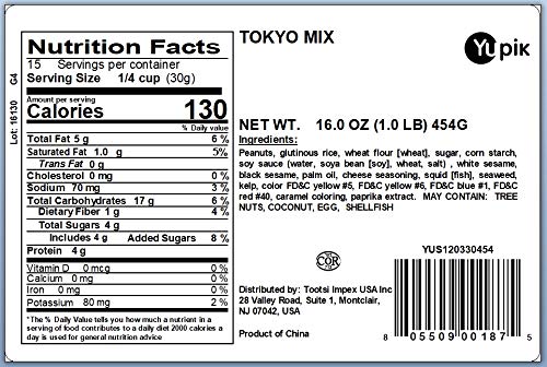 Yupik’s Tokyo mix is a savory blend of peanuts covered in a rice cracker coating and flavored with soy sauce. This mix includes peanuts covered in a variety of seasonings, such as paprika, sesame seeds, seaweed, and kelp. This mix is a savory and unique snack.